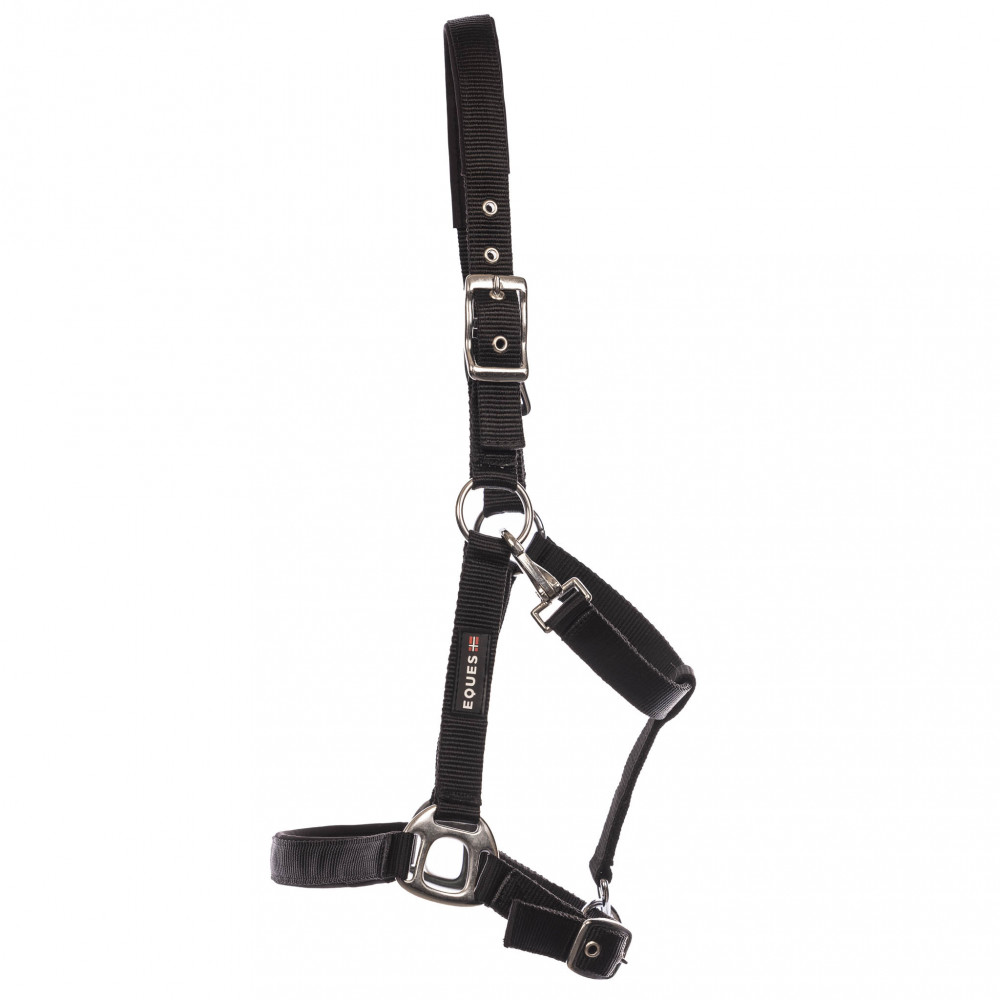 Sort kvalitetsgrime med 2 spænder samt blød foring over næseryg og nakke.